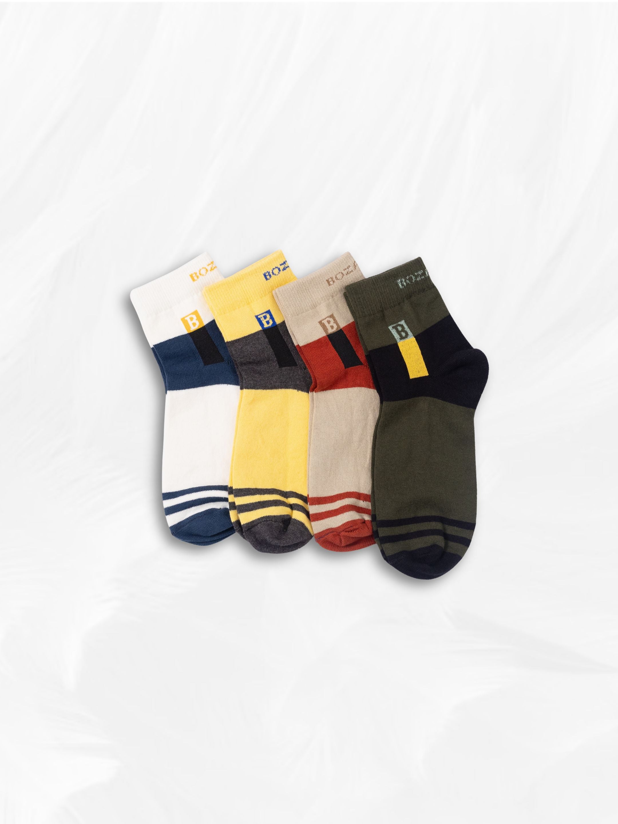 Men's Cotton Socks | Sports Ankle Length Cotton Socks | Breathable | Contrust Nonterry Socks for Men(105)-Pack of 4