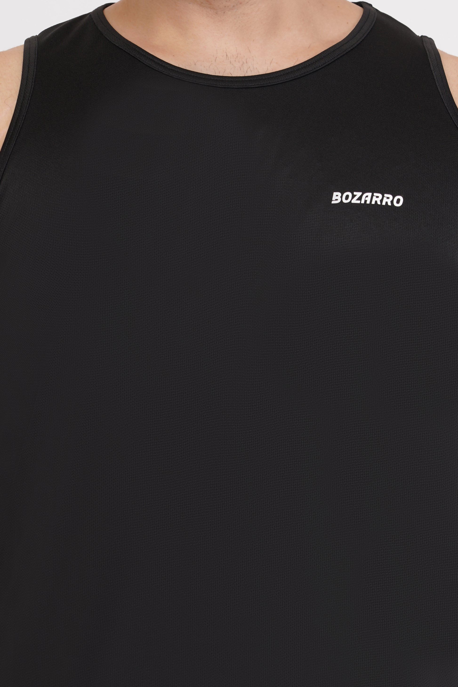Men's Slim Fit Polyester Sleeveless Sando Top | Gym Tank Tops | Regular Fit Vest for Men - Black