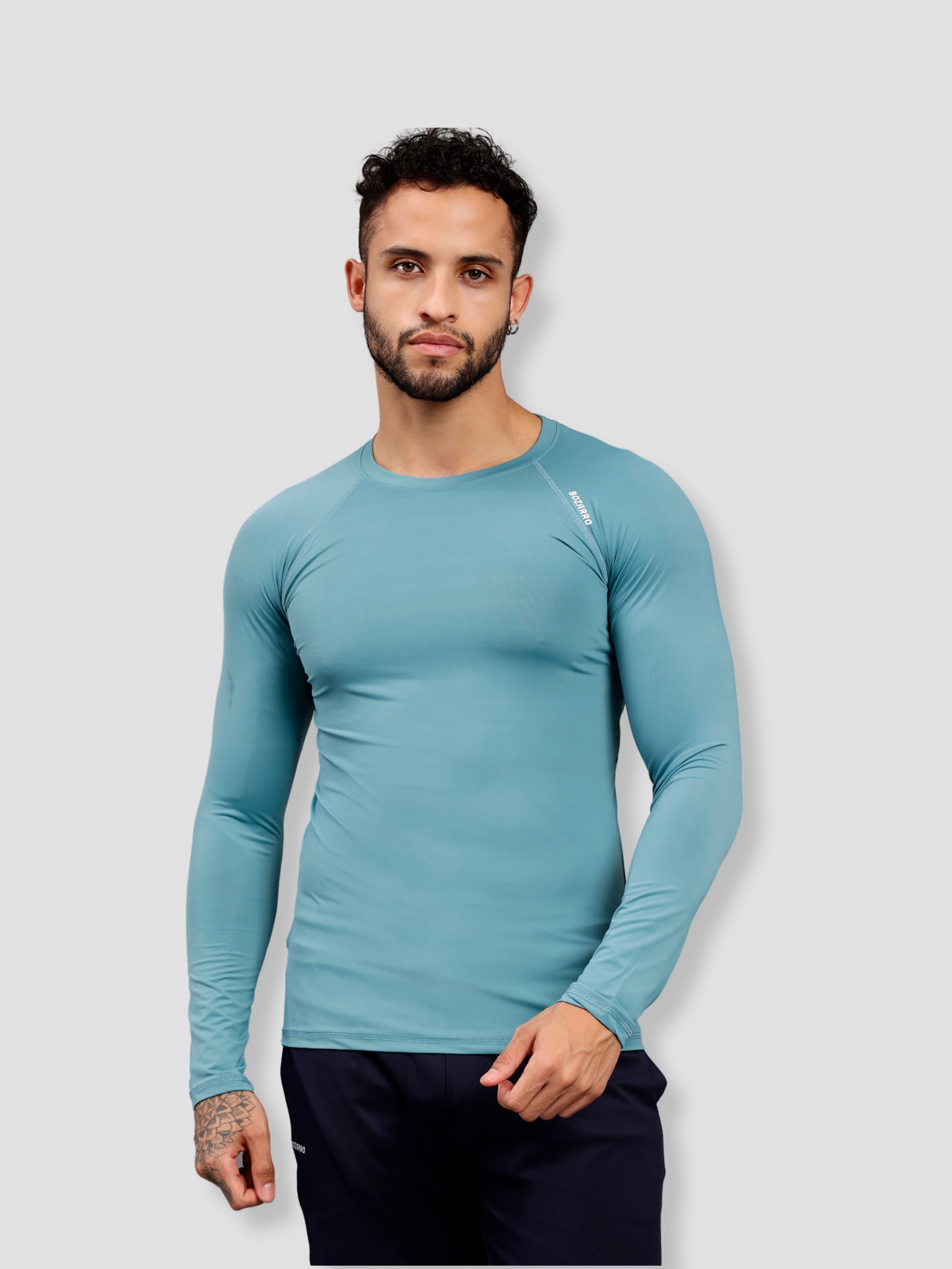 Round neck Compression Full sleeve tshirt- Ice blue