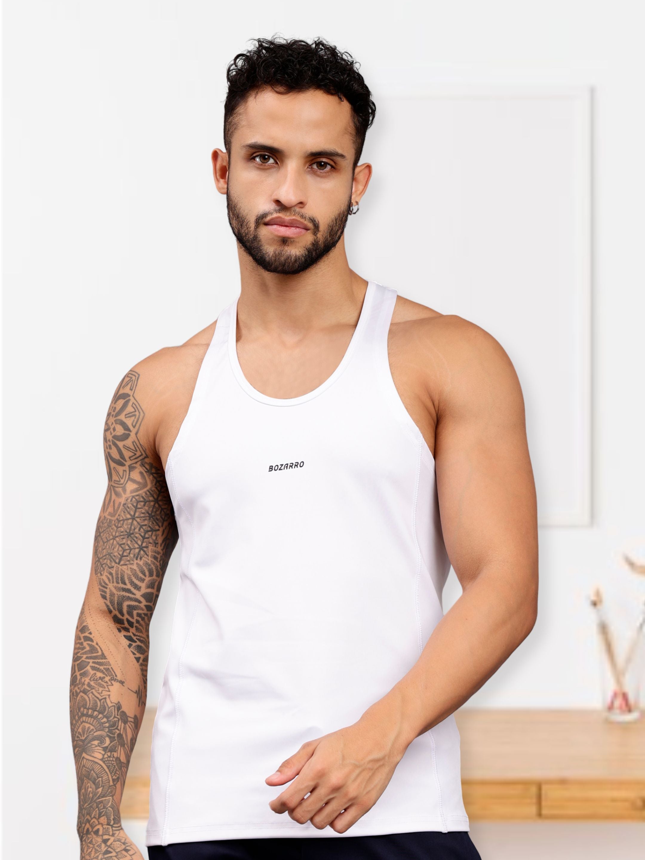 Men's Regular Fit Stringer | Men's Gym Tank Top Stringers |Solid Low Neck Tank Top For Men - White
