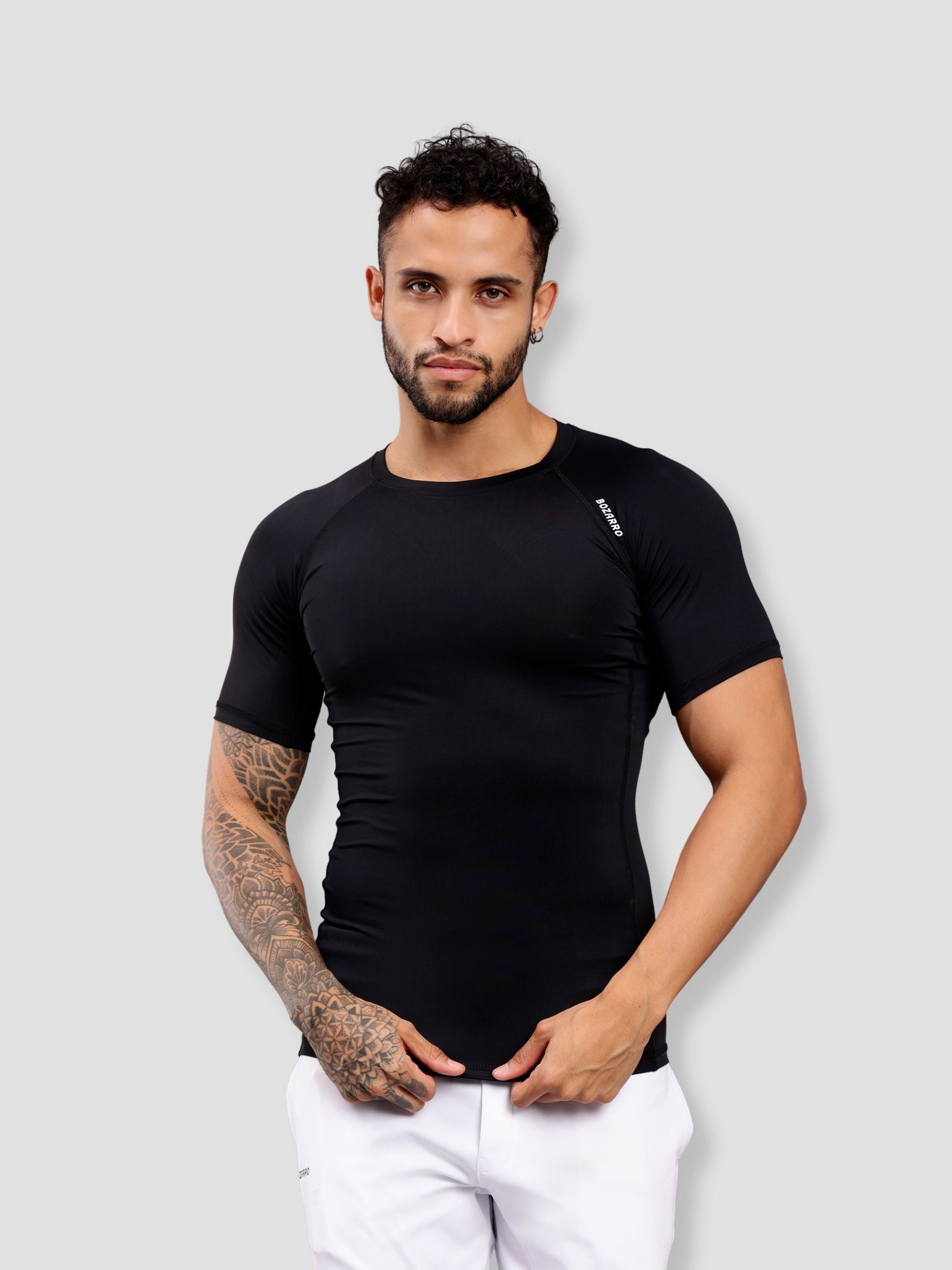 Round neck Compression half sleeve tshirt-Black