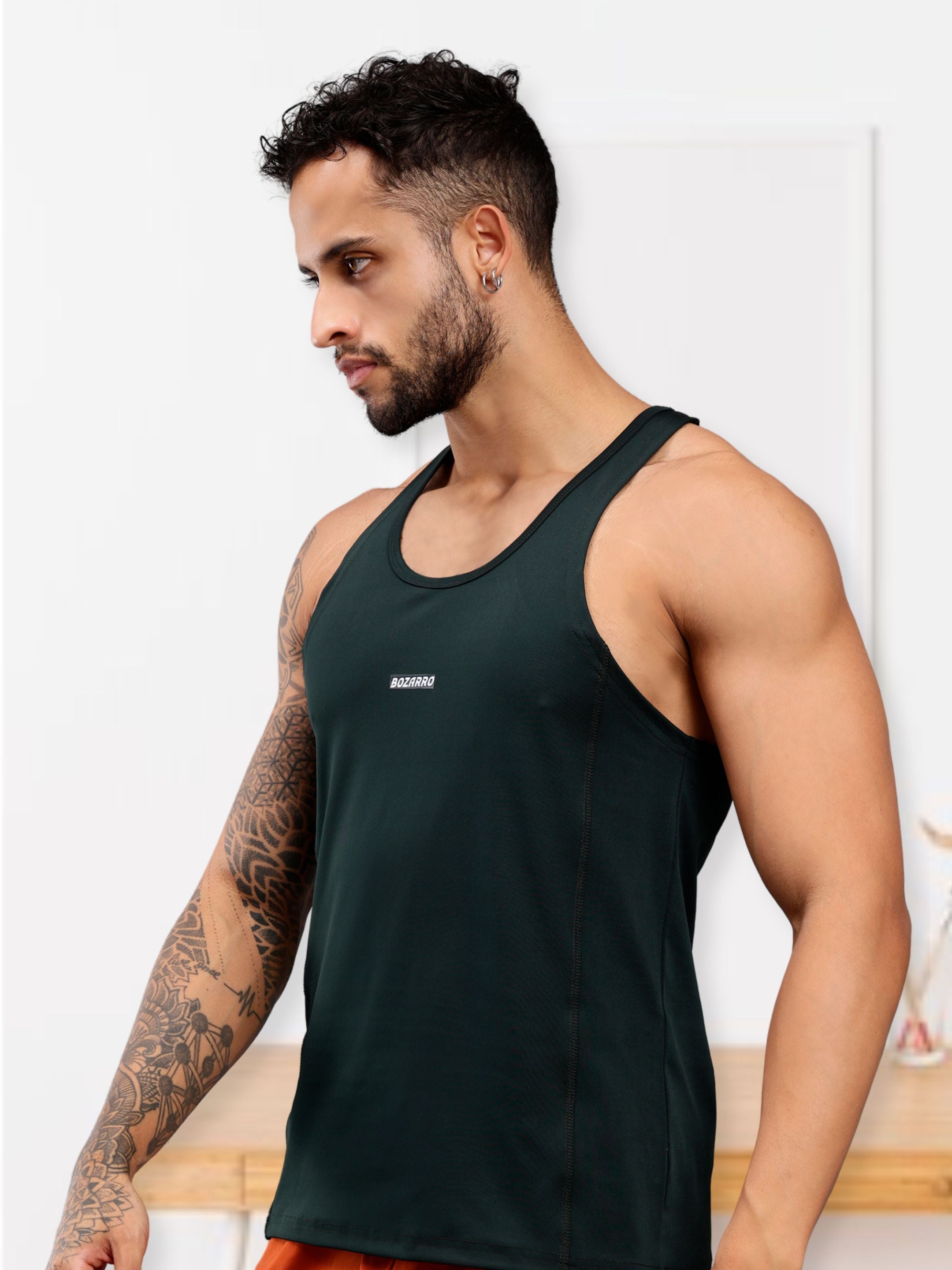 Men's Regular Fit Stringer | Men's Gym Tank Top Stringers |Solid Low Neck Tank Top For Men - Dark Green