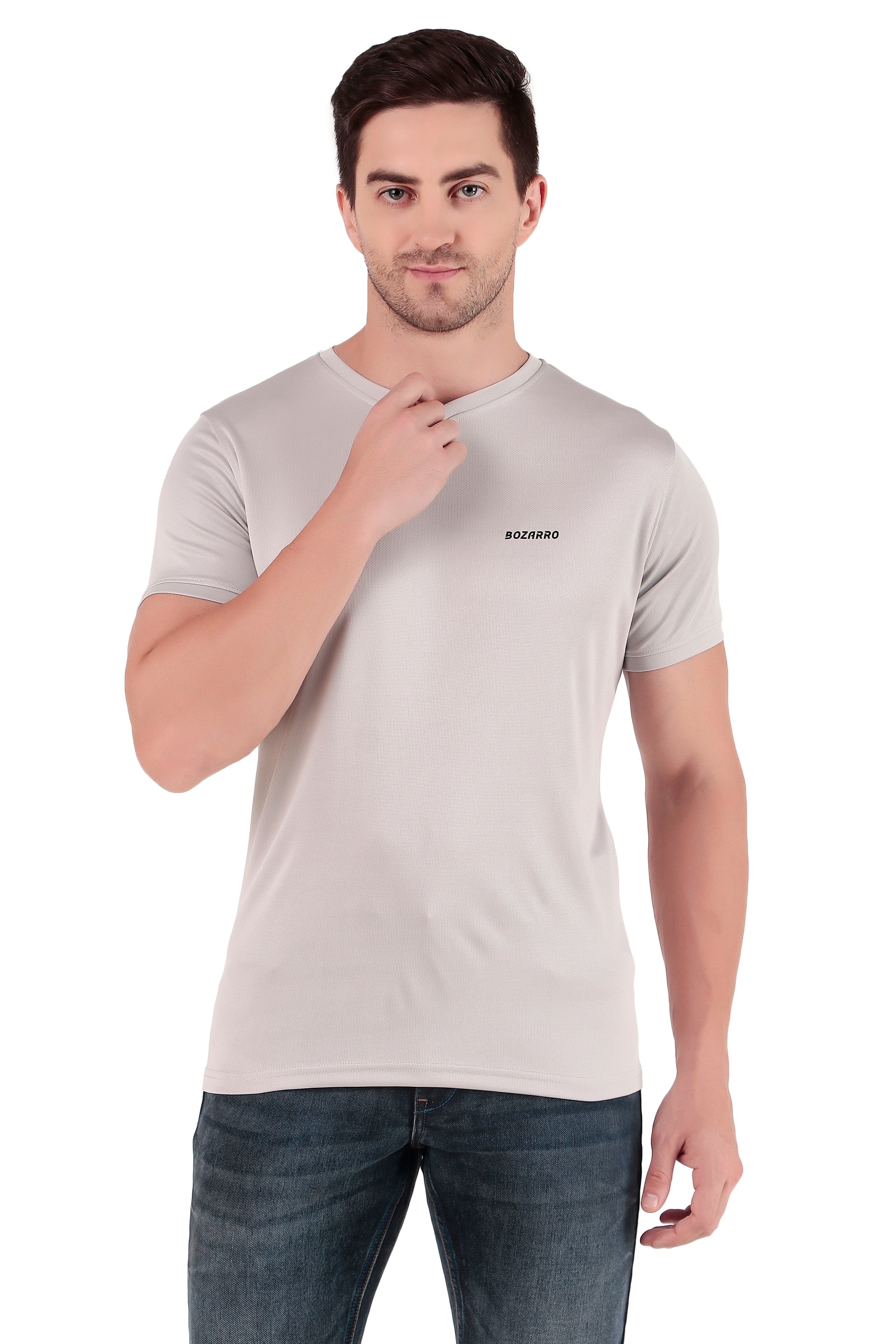 Men's Solid Regular Fit V Neck T-Shirt |Micro dot knit | Half Sleeved Casual T-shirt for Men(VN-01) -Light Gray