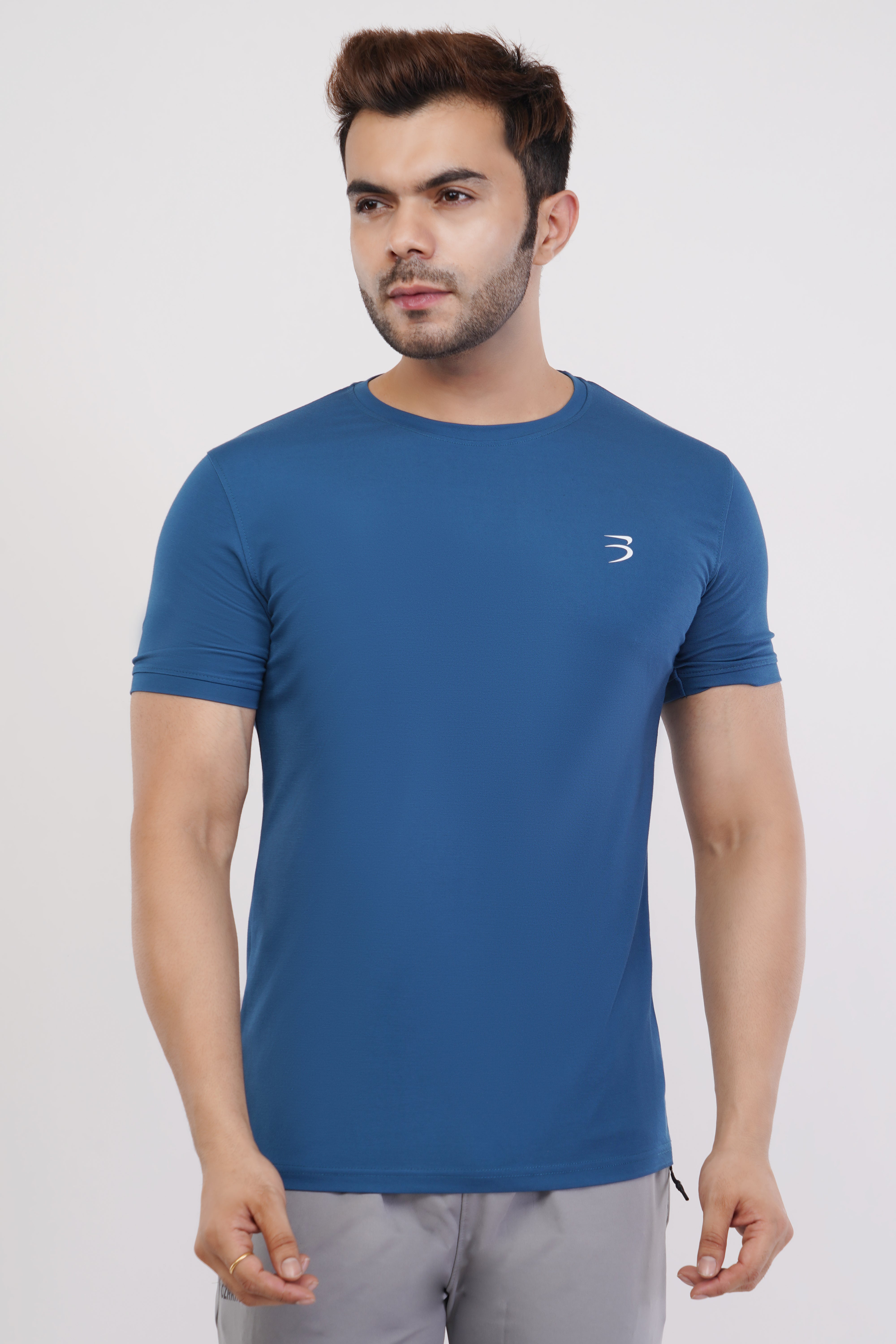 Men's Round Neck T-Shirt | Half Sleeve | Solid Regular Fit T-Shirt For Men(RN08)- Petrol Blue